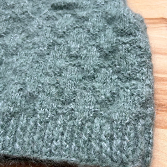 Pelēkzaļa mohēras dzijas veste bērnam (~4-6 gadi) (VEPA 90)