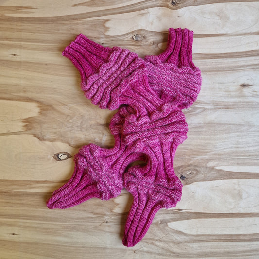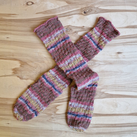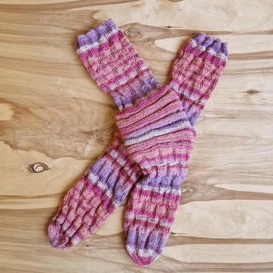 Rokām adītas bezpapēžu zeķes rozā violetos toņos (RECE 56)