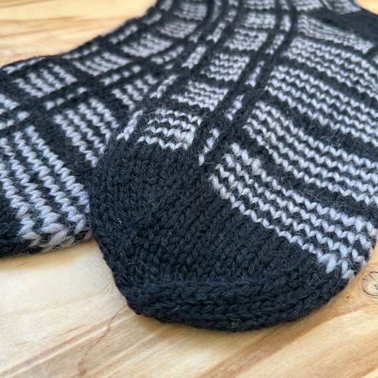 Melnas ar pelēku rakstu siltās zeķes 39.-41.izm. (INPO 102)