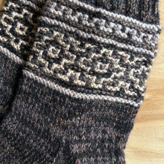 Siltās zeķes 45.-47.izm. raibas brūnas zeķes ar gaiši brūniem ornamentiem (MALI 45)