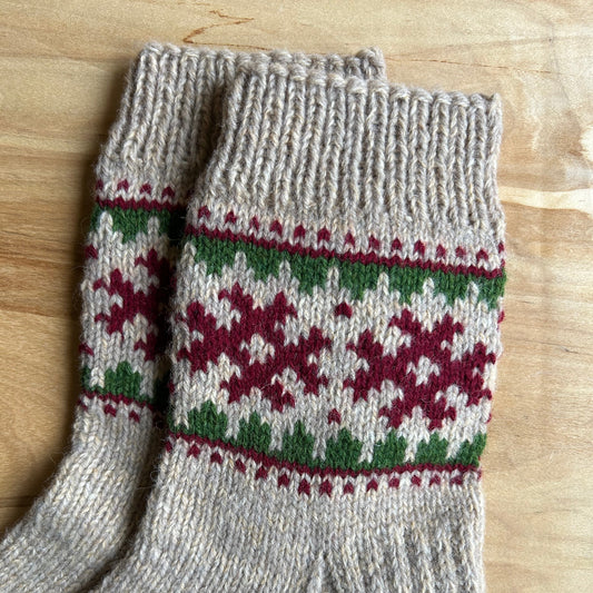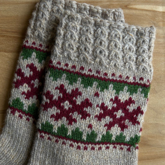 Siltās zeķes 45.-47.izm. gaiši brūnas zeķes ar sarkaniem ornamentiem (MALI 51)