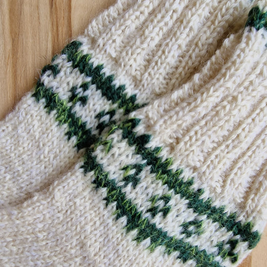 Dabīgi baltas lauku vilnas zeķes vīriešiem 45.-47.izm. ar zaļām līnijām uz valnīša (VALU 8)