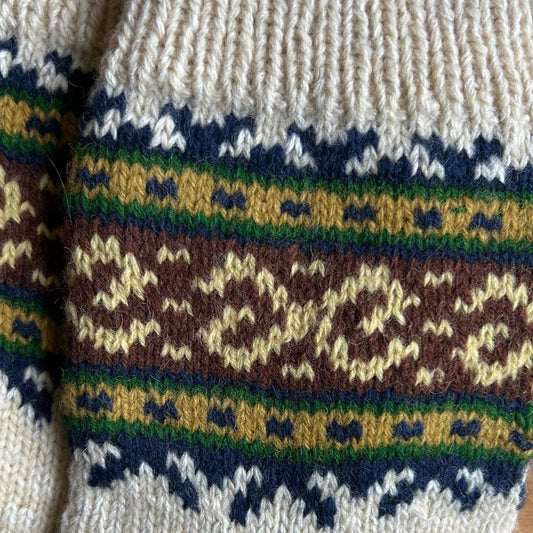 Siltās zeķes 45.-47.izm. gaiši brūnas zeķes ar sarkaniem ornamentiem (MALI 54)