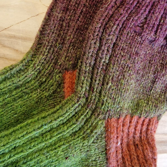 Violeti/bordo/zaļganu krāsu vilnas zeķes 45.-47.izm. (IVZA 39)