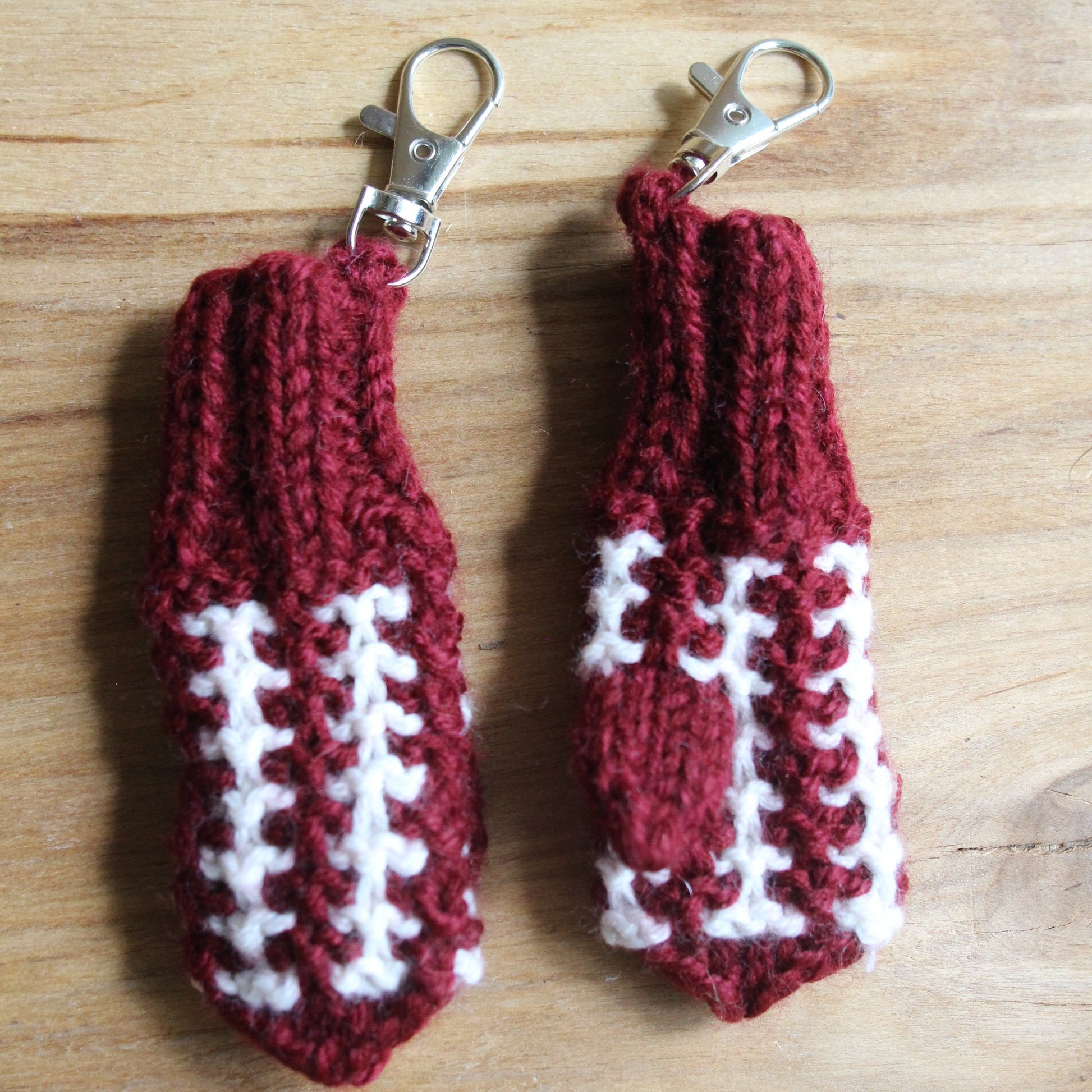 Neliels, ar rokām adīts piekariņš cimdiņa formā, aprīkots ar metāla gredzenu, lai to varētu pievienot pie atslēgām vai somas.