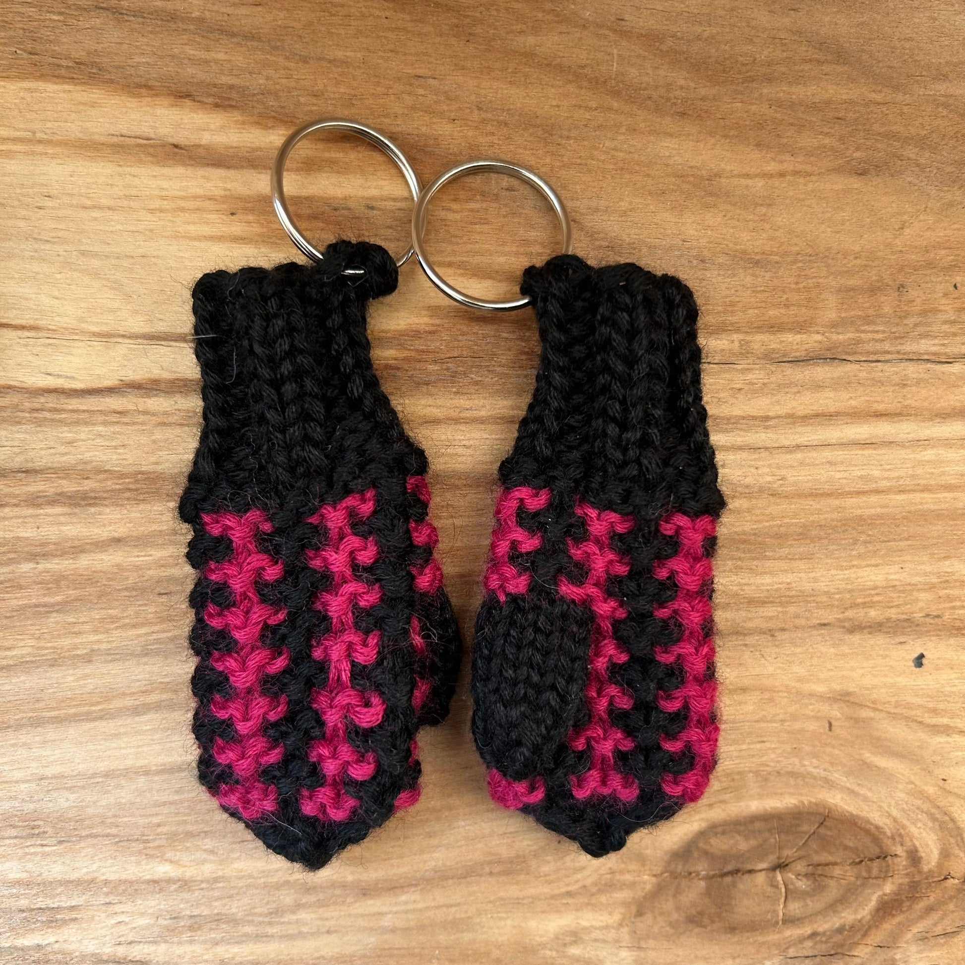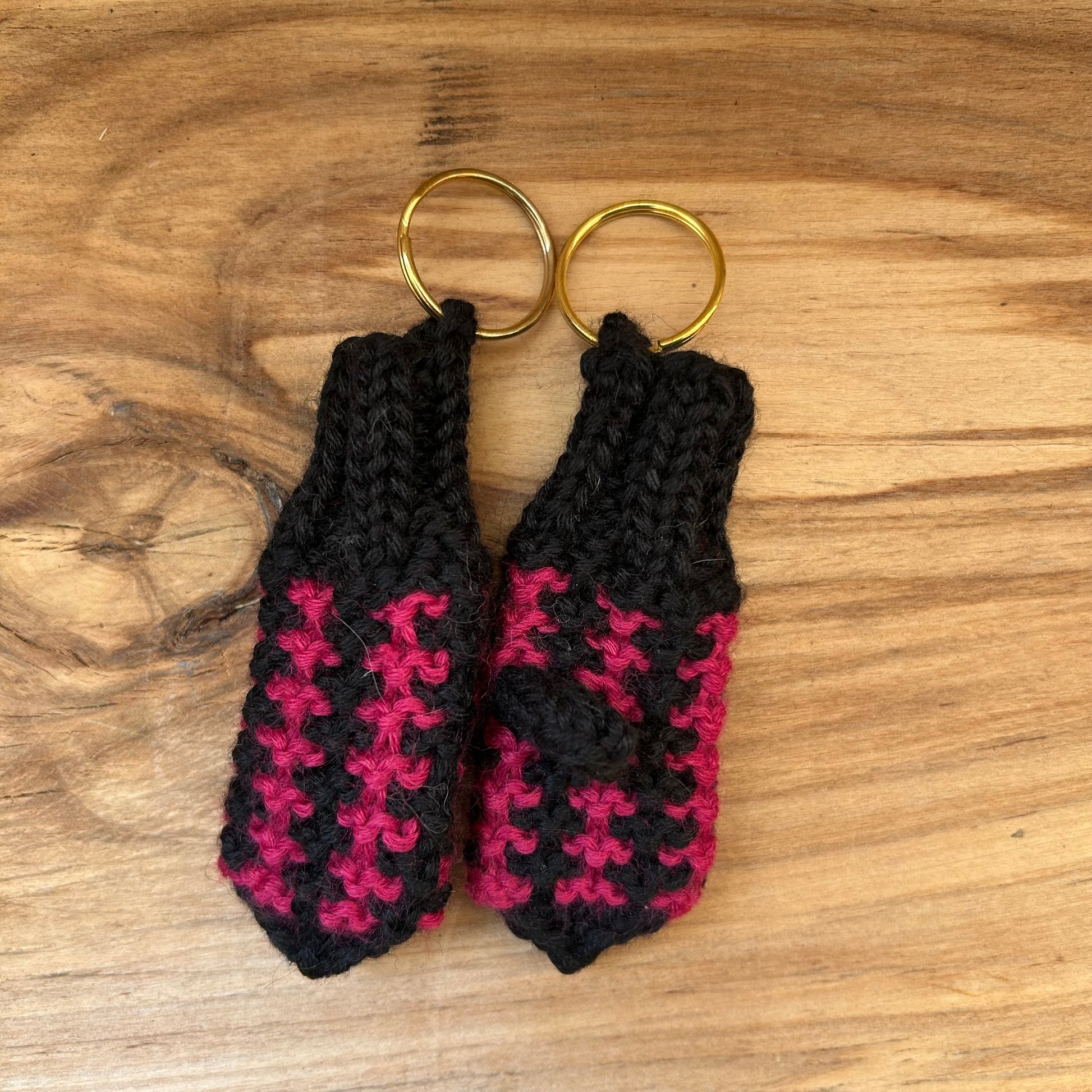 Neliels, ar rokām adīts piekariņš cimdiņa formā, aprīkots ar metāla (gan sudraba, gan zelta krāsā) gredzenu, lai to varētu pievienot pie atslēgām vai somas.