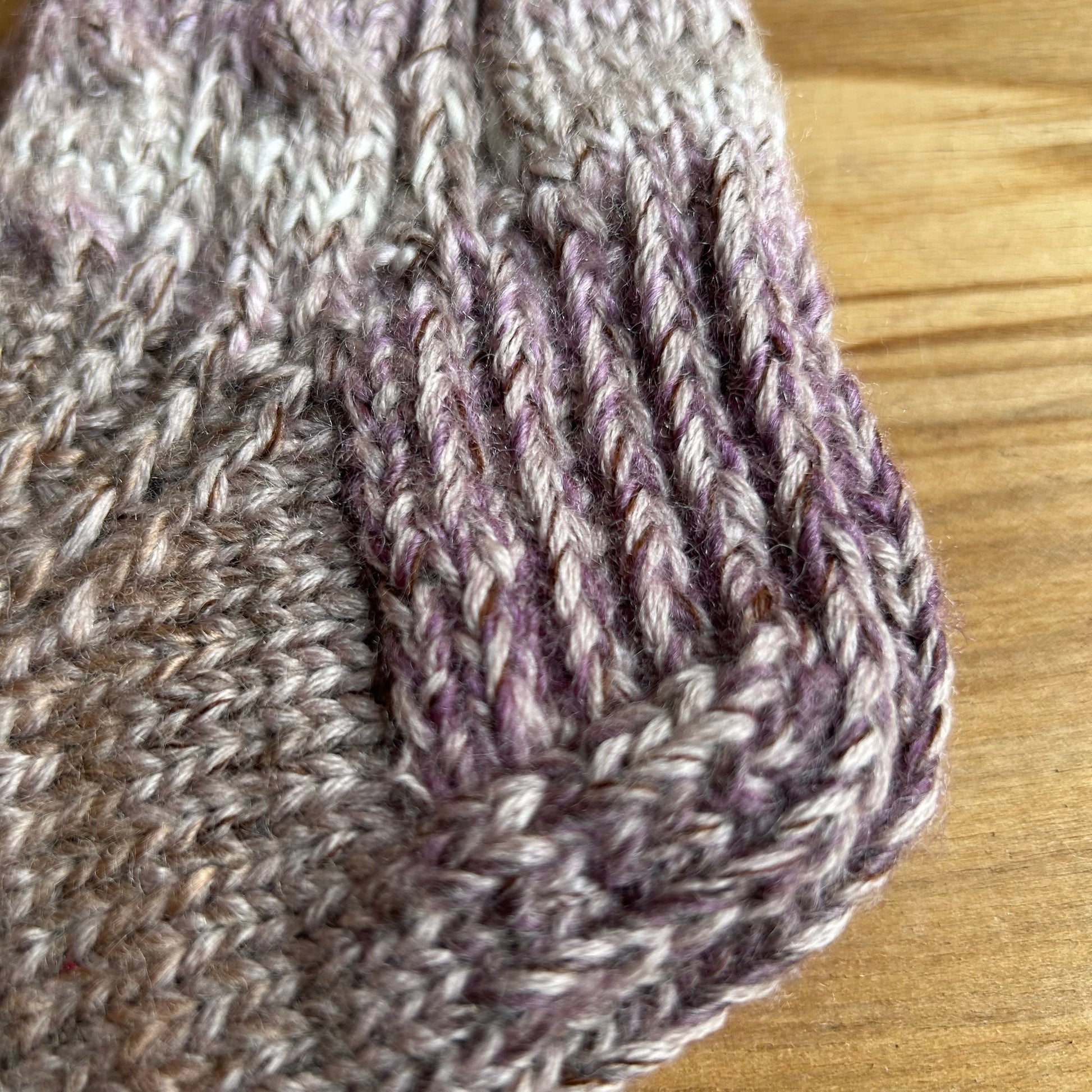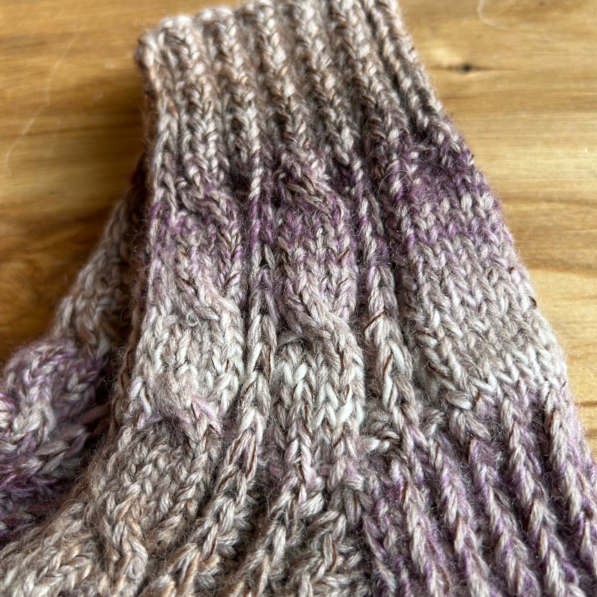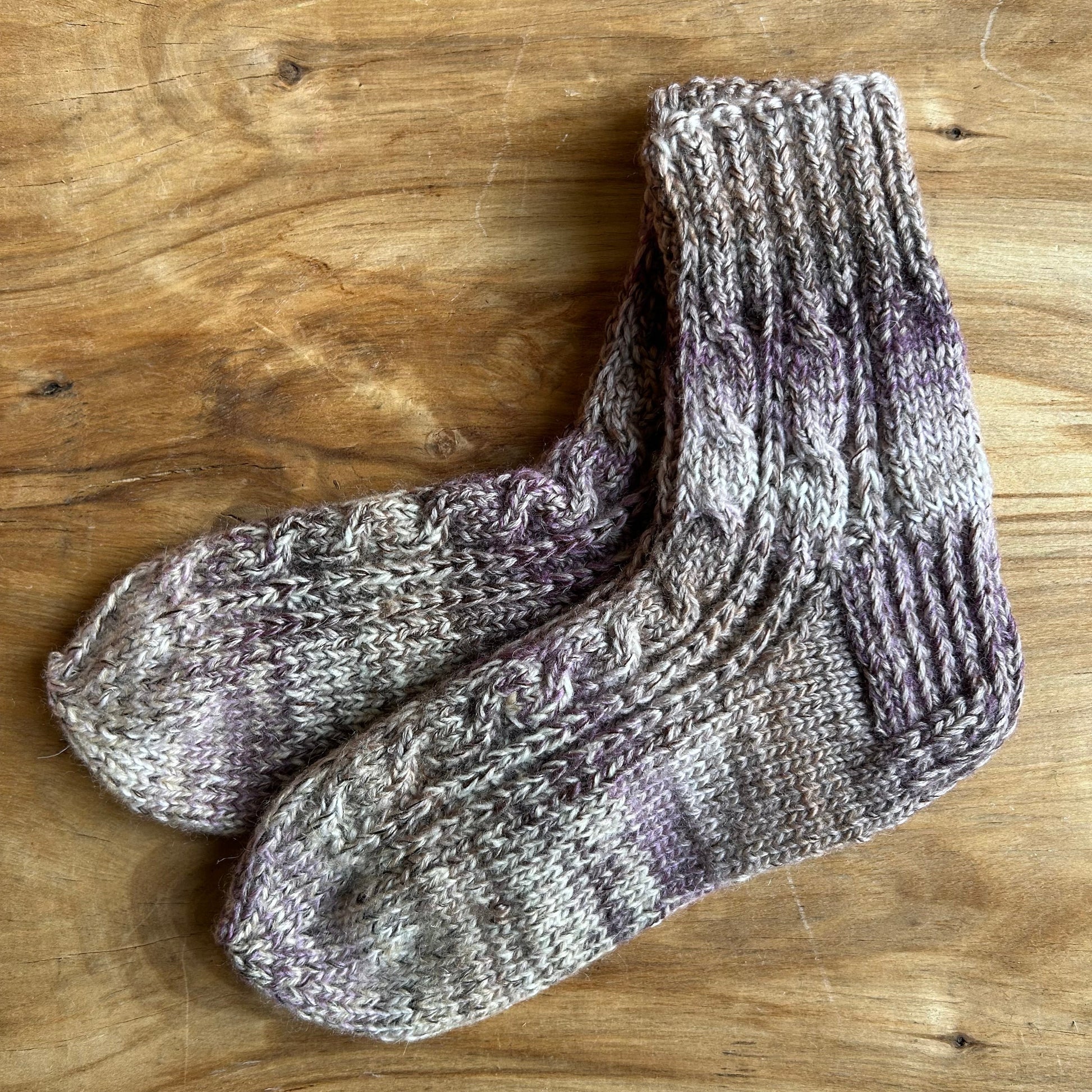 Rokām adītas vilnas zeķes 42.-44.izm. brūnā krāsā ar raibumiem. Stulma augstums 13 cm / adītās pēdas garums neiestiepjot 27 cm.
