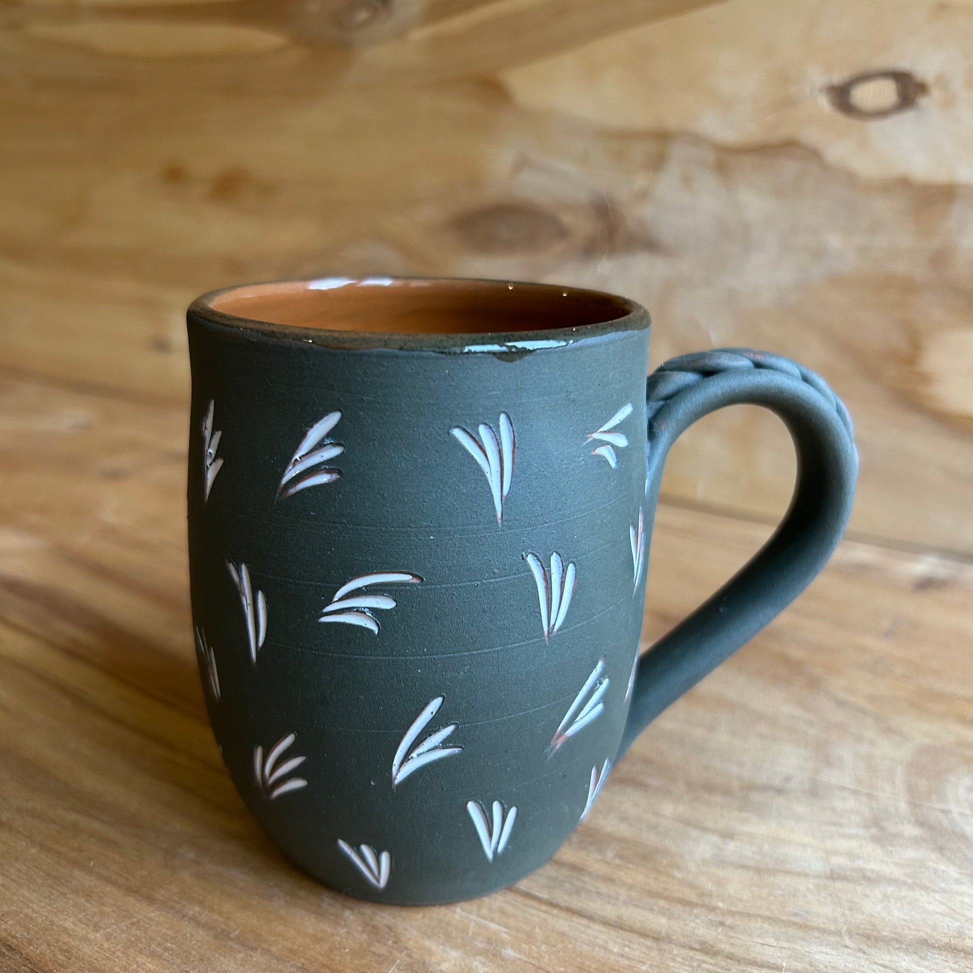 Krūze ir ideāla gan rīta kafijai, gan vakara tējai. Māls lieliski notur siltumu, un dabīgā virsma rada patīkamu sajūtu rokās.
