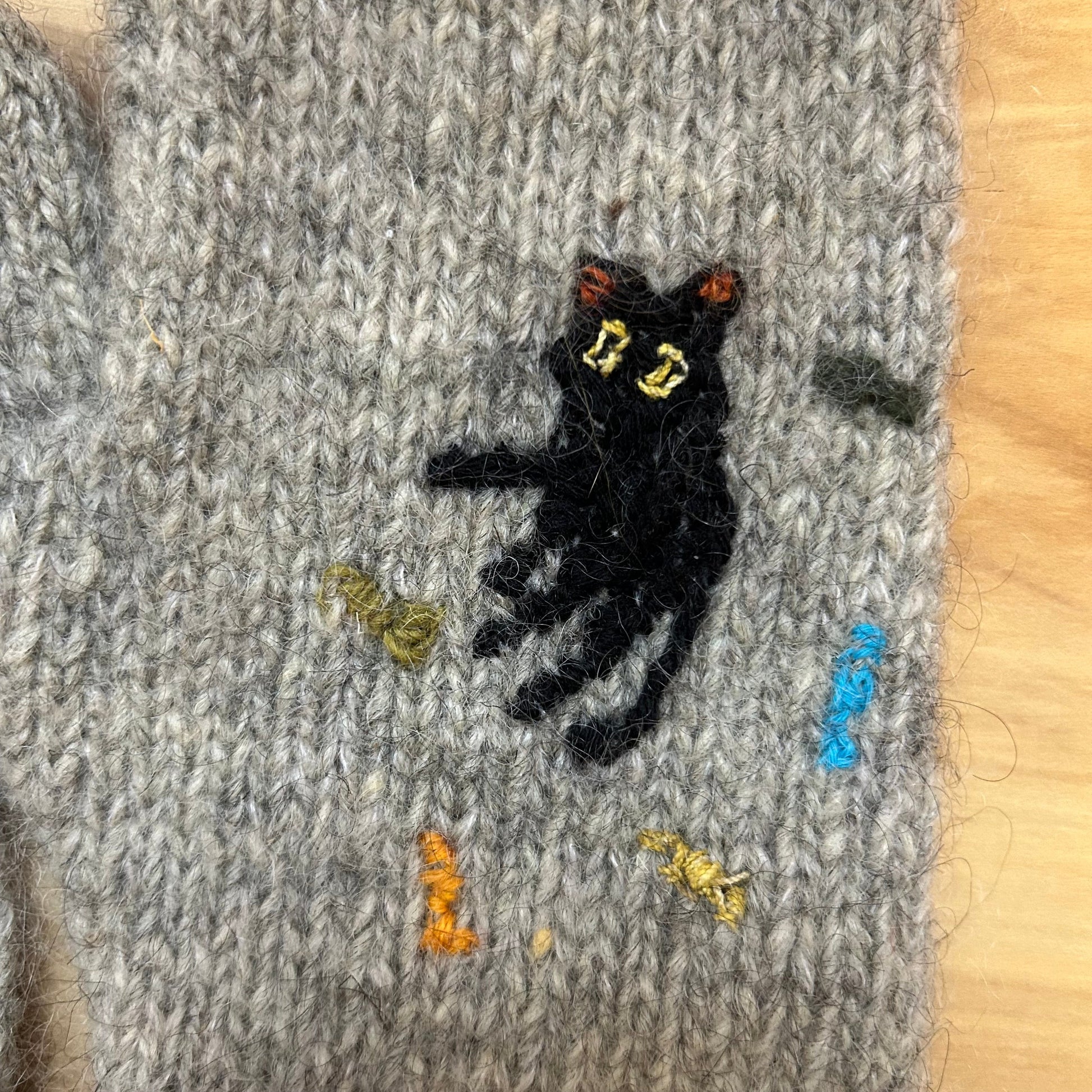 Pelēki adīti dūraiņi ar izšūtu zīmējumu (RUTO 3)