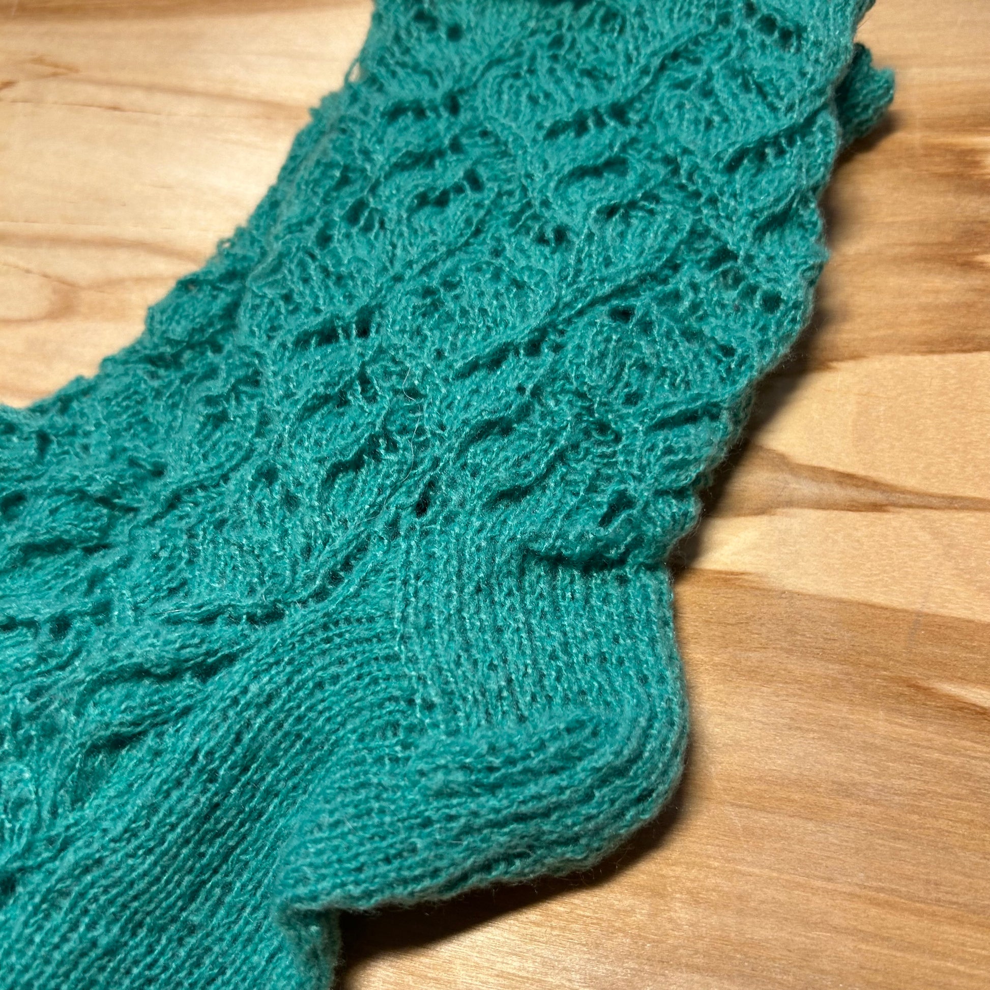 Zaļas krāsas mežģīņu adījuma siltās zeķes 37.-39. izm. (SITĒ 38)