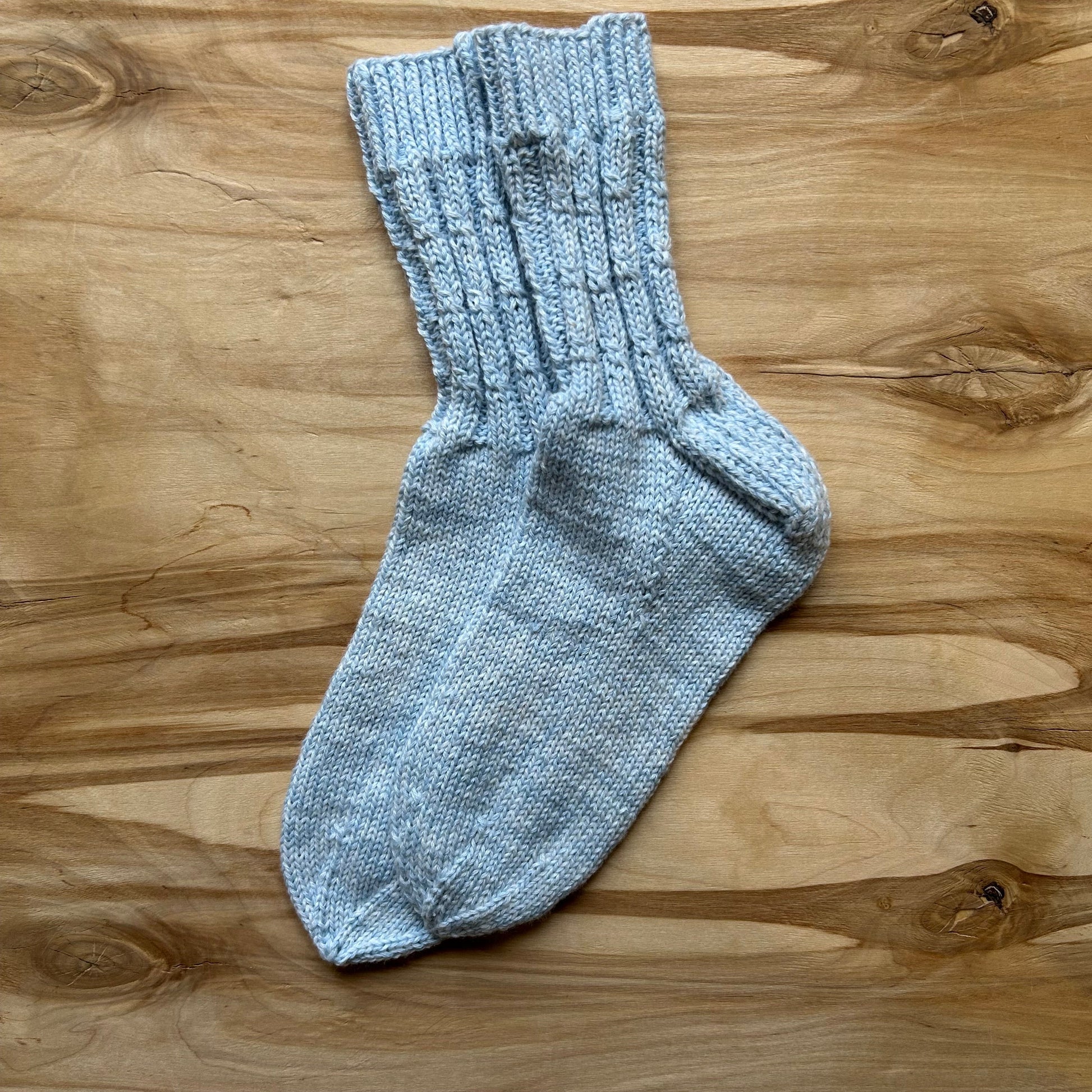 Gaiši zilas melanža dzijas vilnas zeķes ar rakstainu valnīti 37.-39.izm. (VEPA 127)