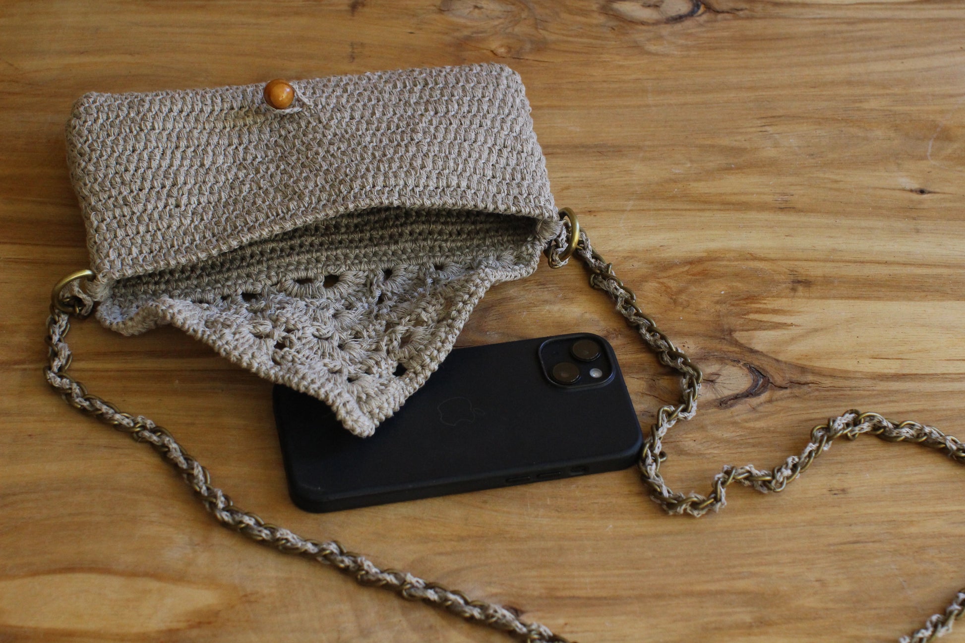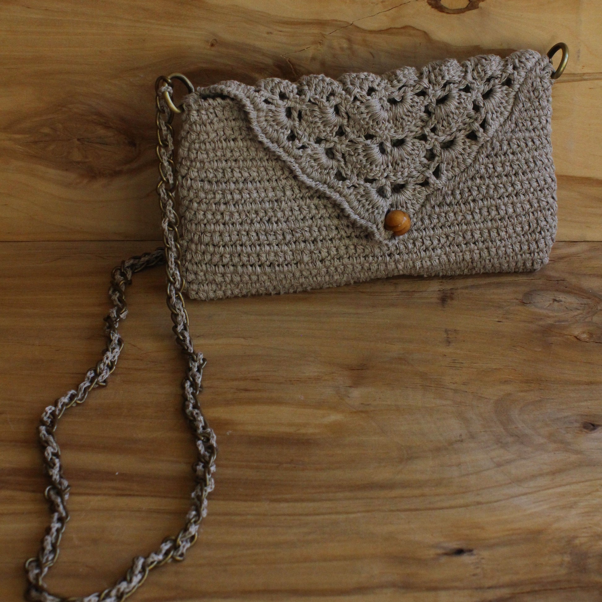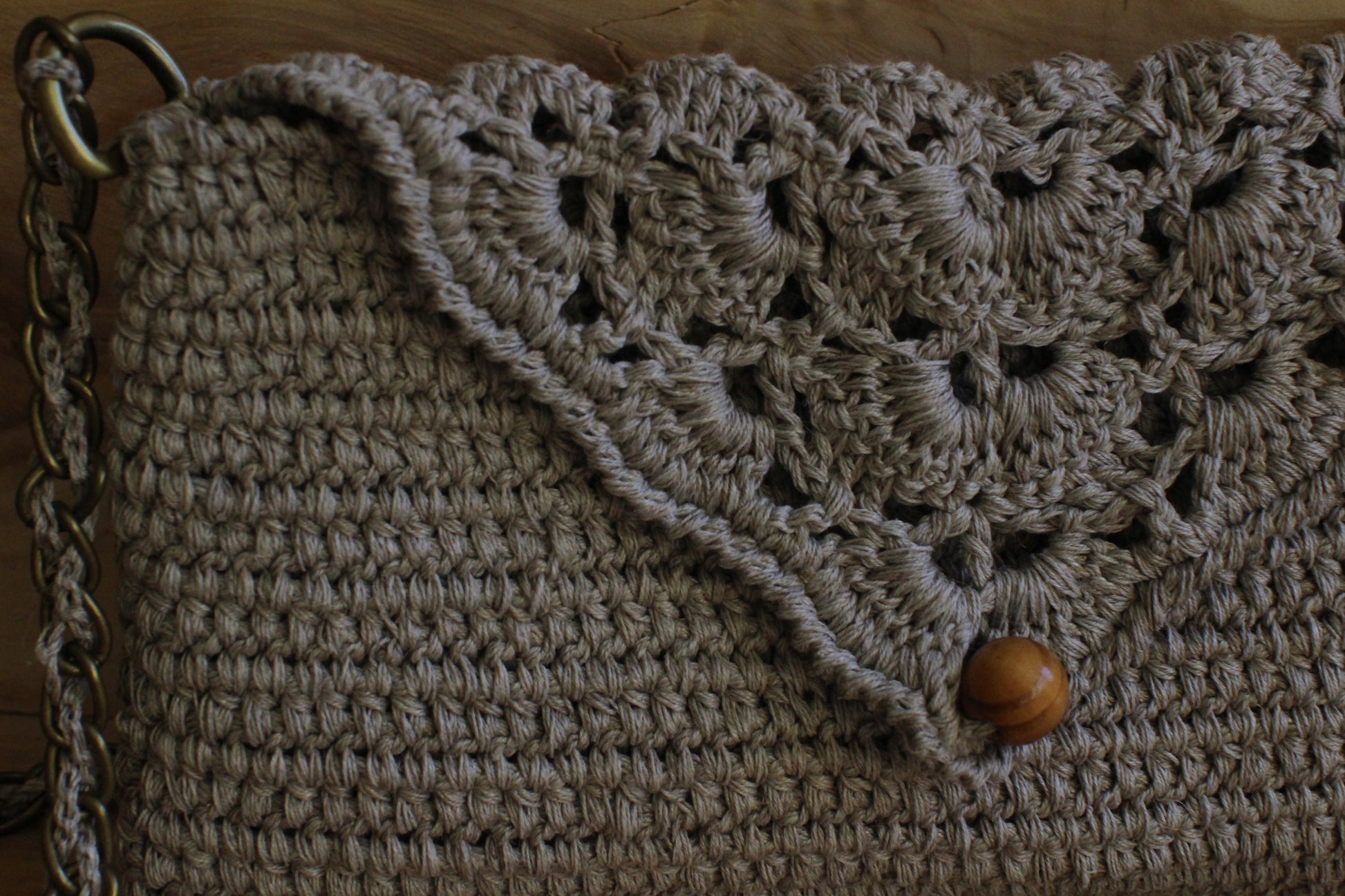 Izgatavota no kvalitatīva dabīga lina diega. Mežģīņu raksts somas aizdarei piešķirtai vieglu un sievišķīgi elegantu raksturu.