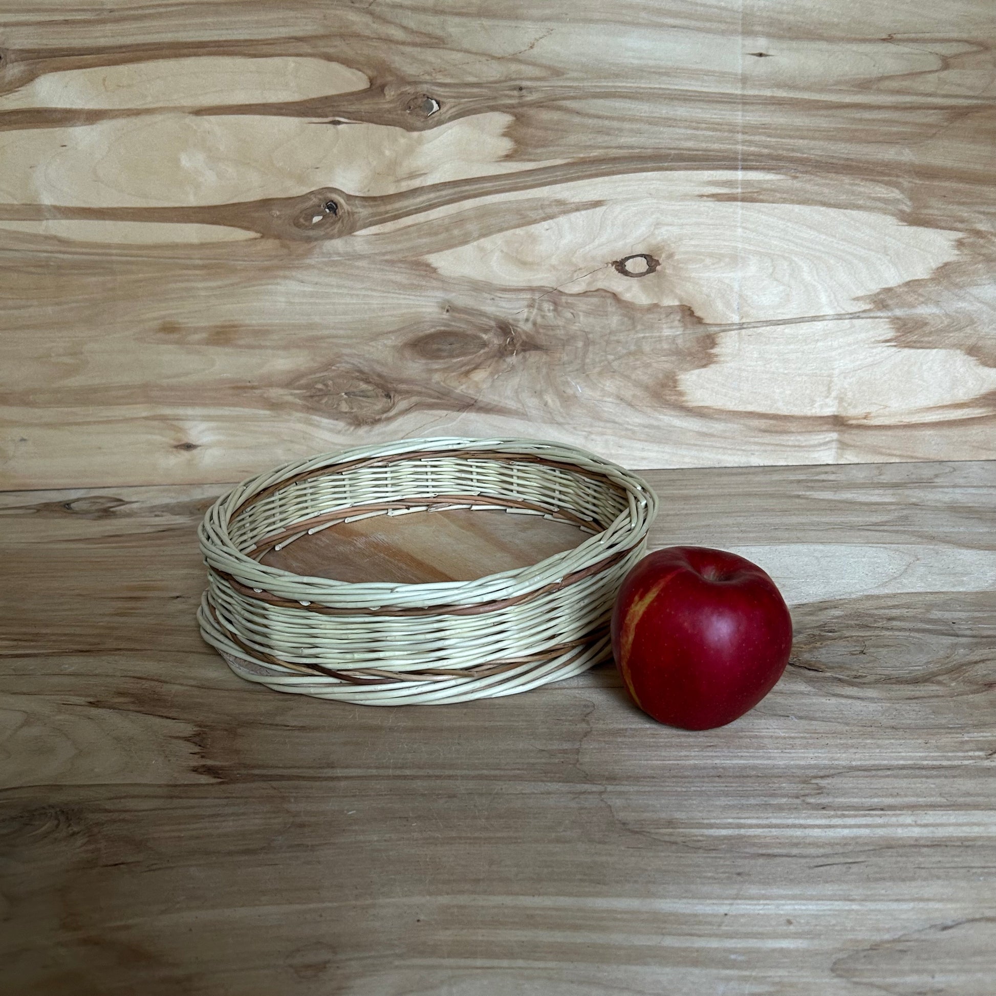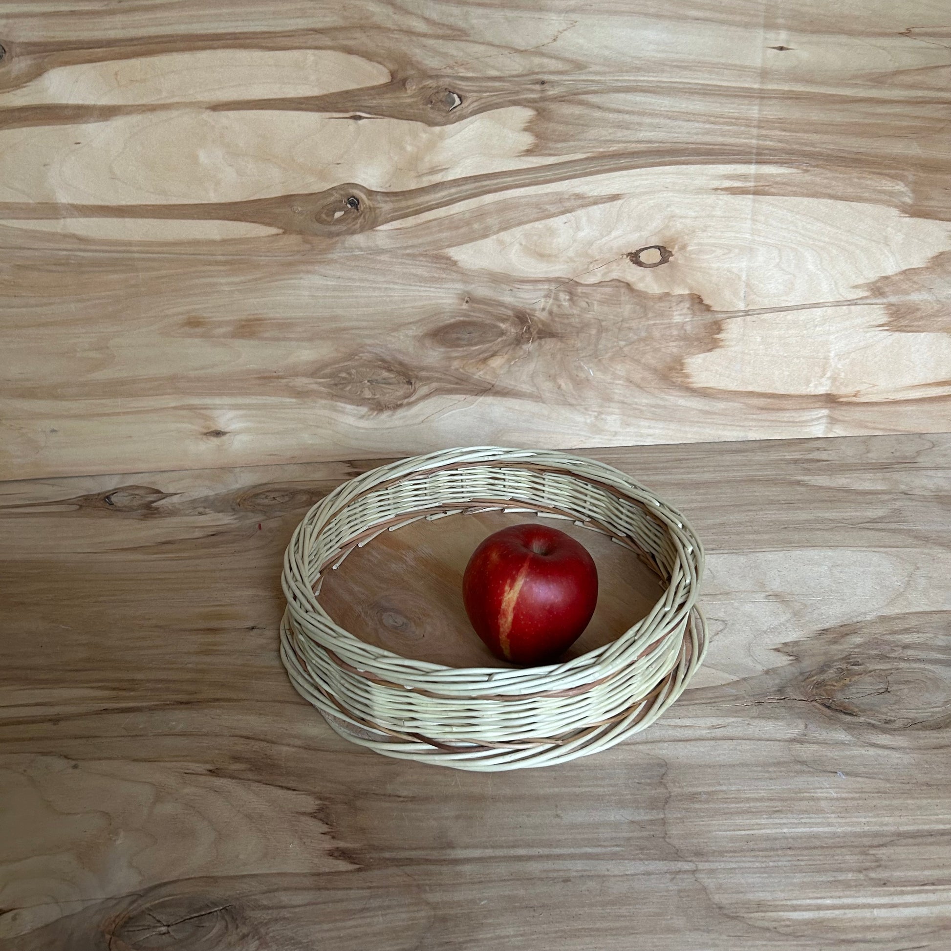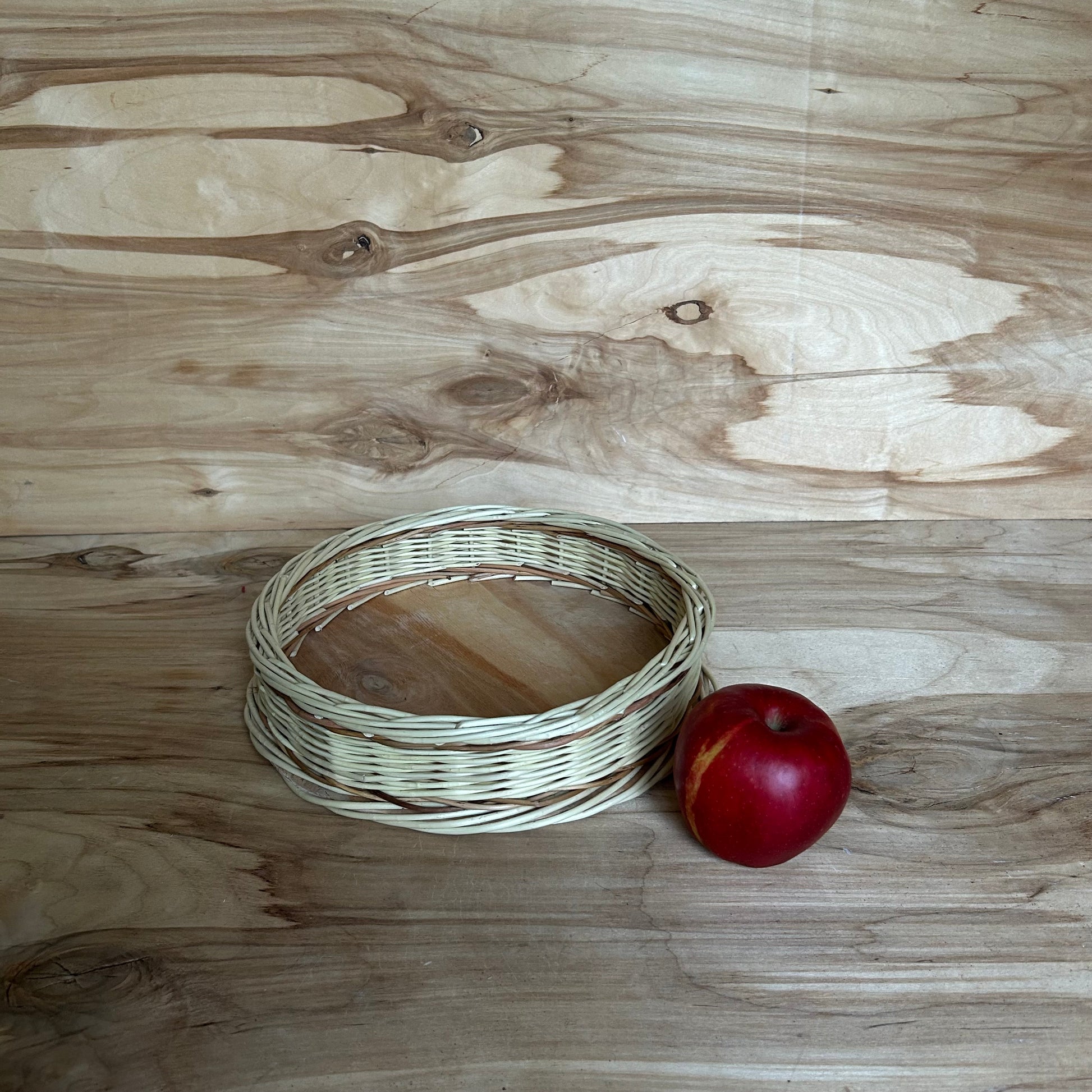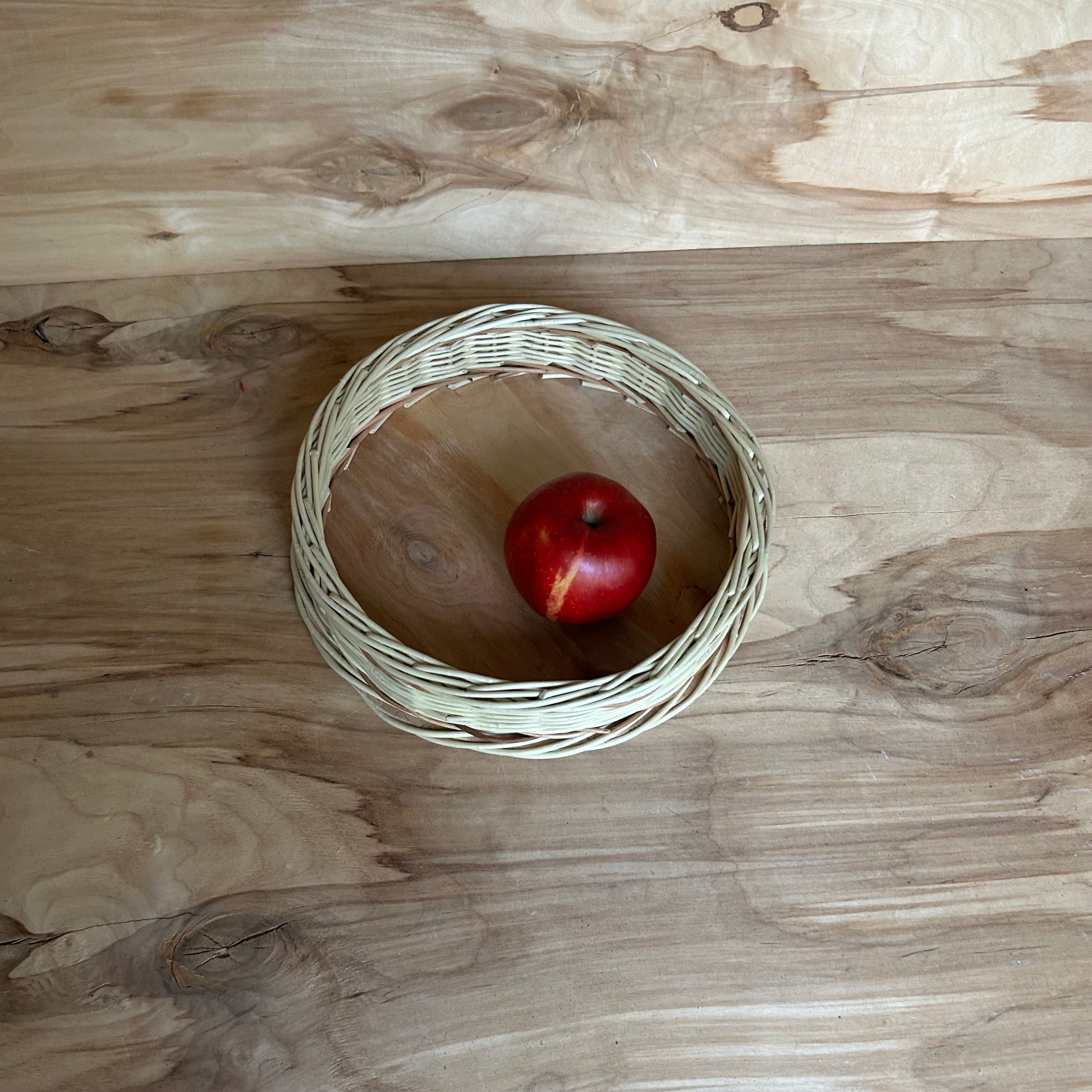 Rokām pīts mizotu klūgu groziņš apaļas formas. Groziņa - paplātes izmērs - 25 cm diametrā, malas augstums 6 cm.