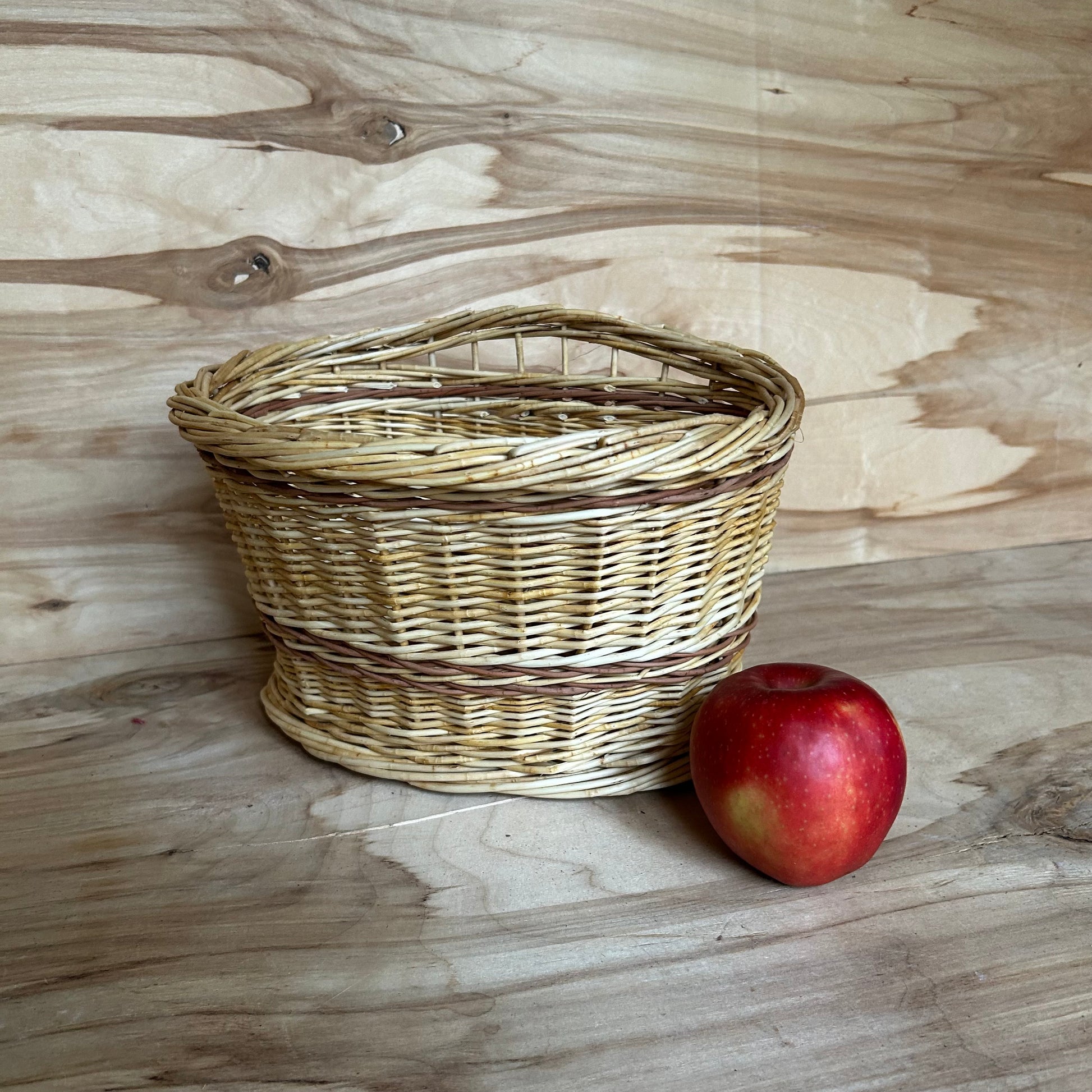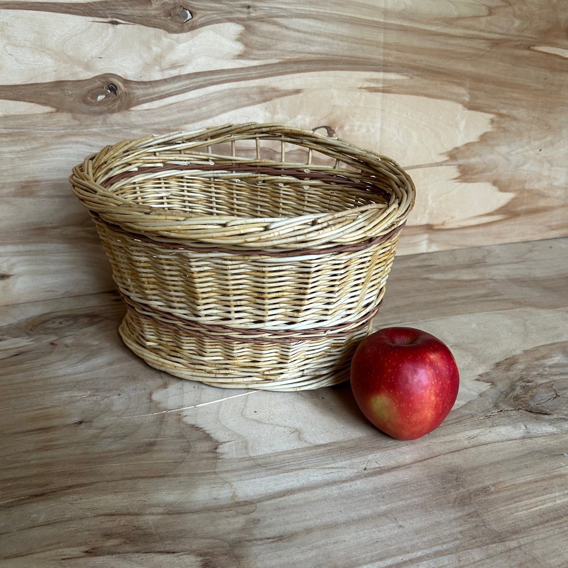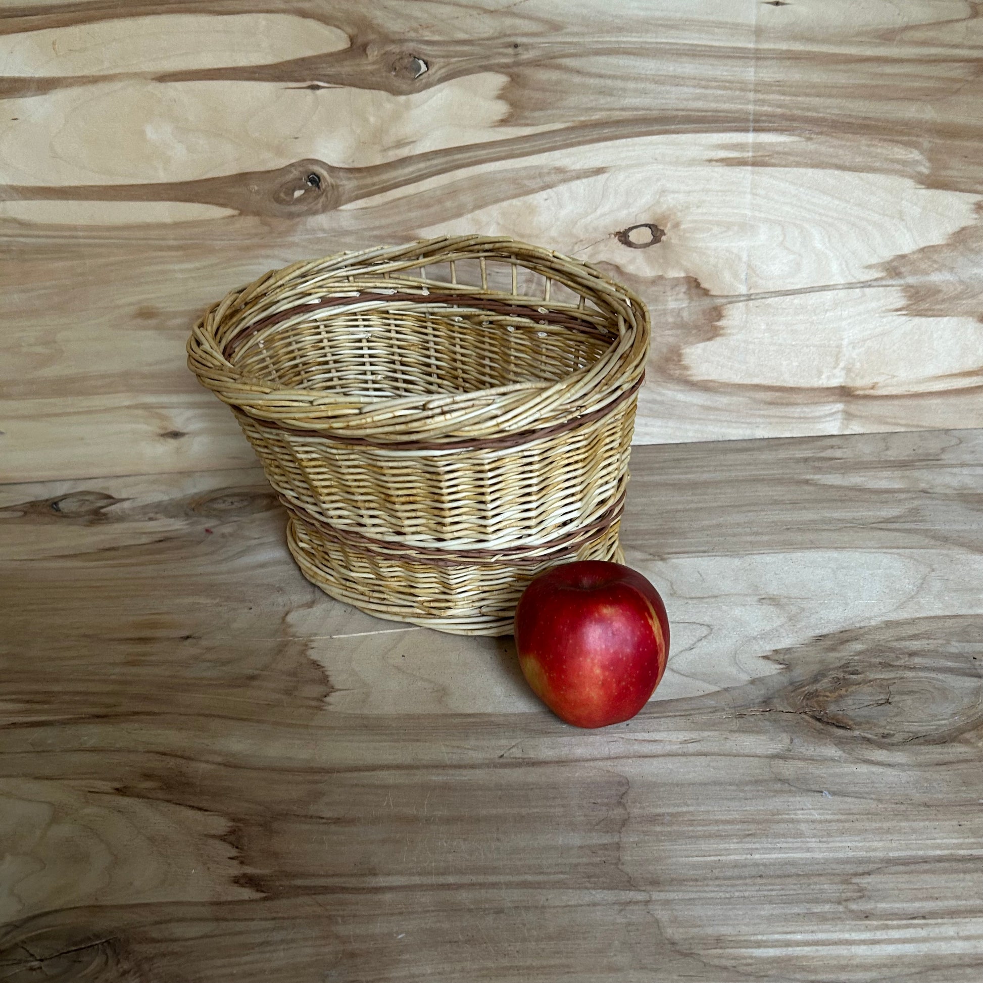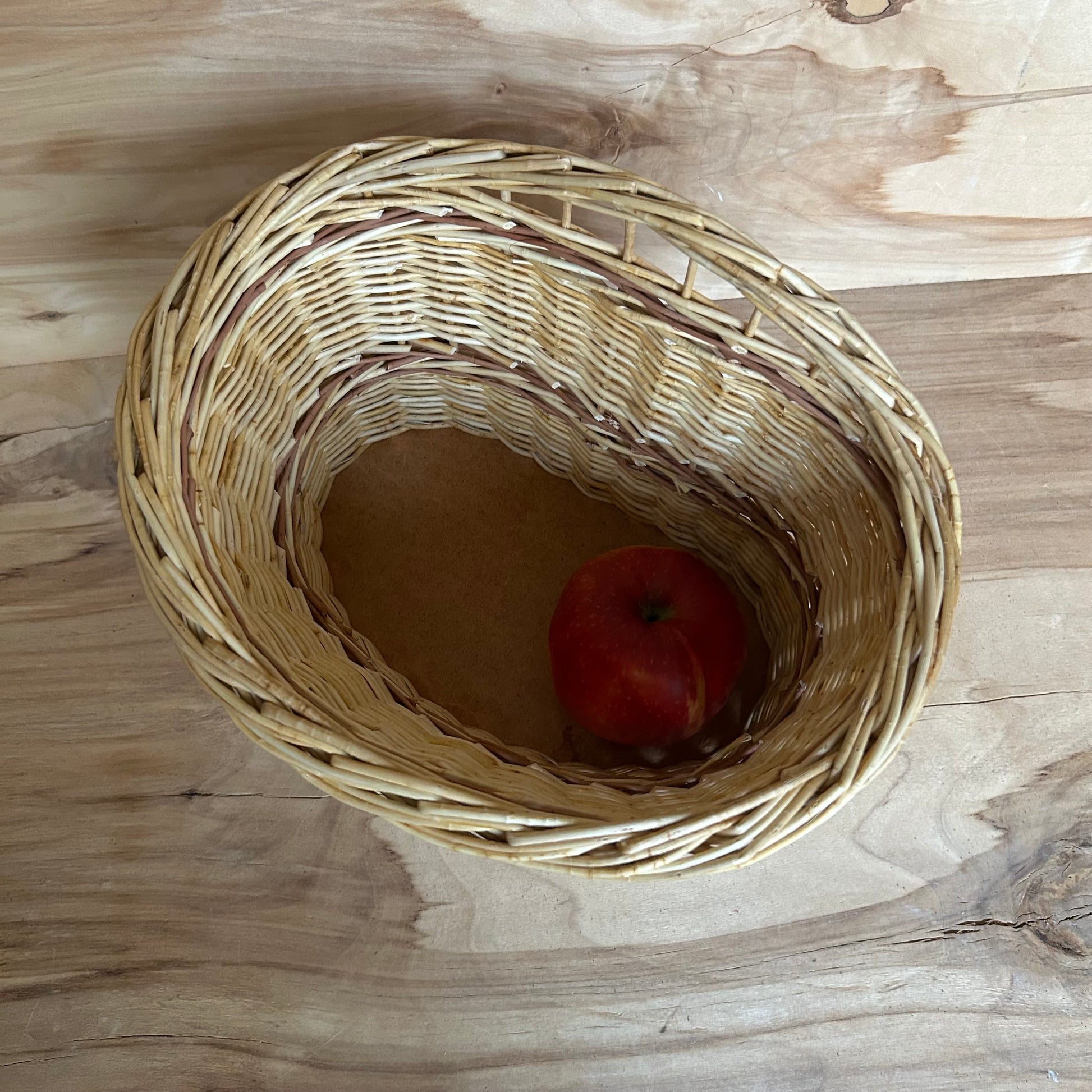 Rokām pīts mizotu klūgu grozs garenas formas. Groza izmērs - 24 x 20 cm diametrā, malas augstums 17 cm.