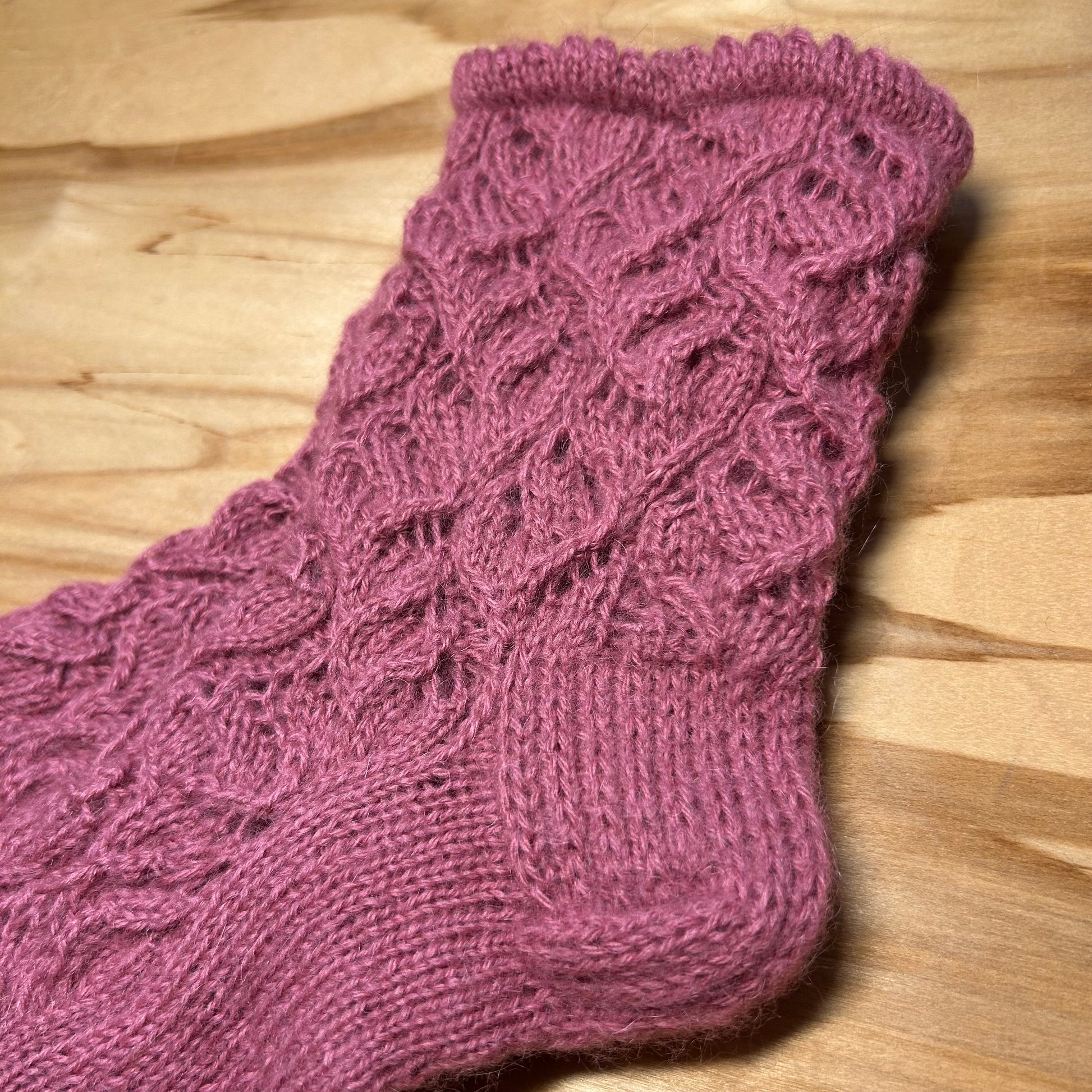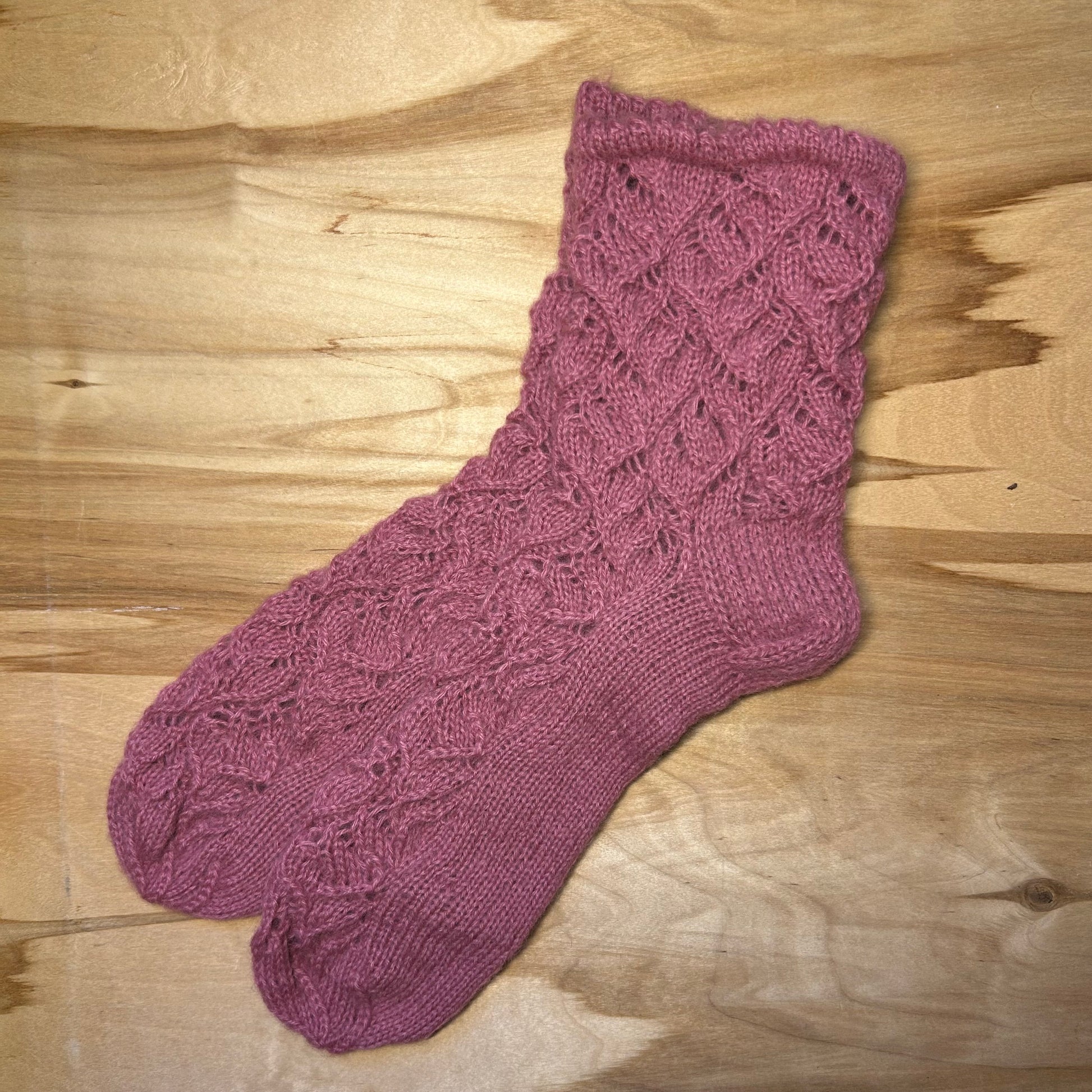 Rozā krāsas mežģīņu adījuma siltās zeķes 38.-40. izm. (SITĒ 32)