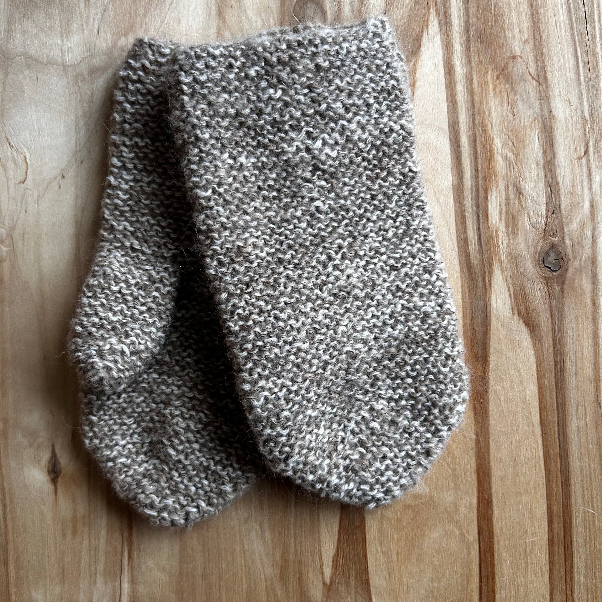 Rokām adīti dūraiņi gaiši brūnā krāsā.