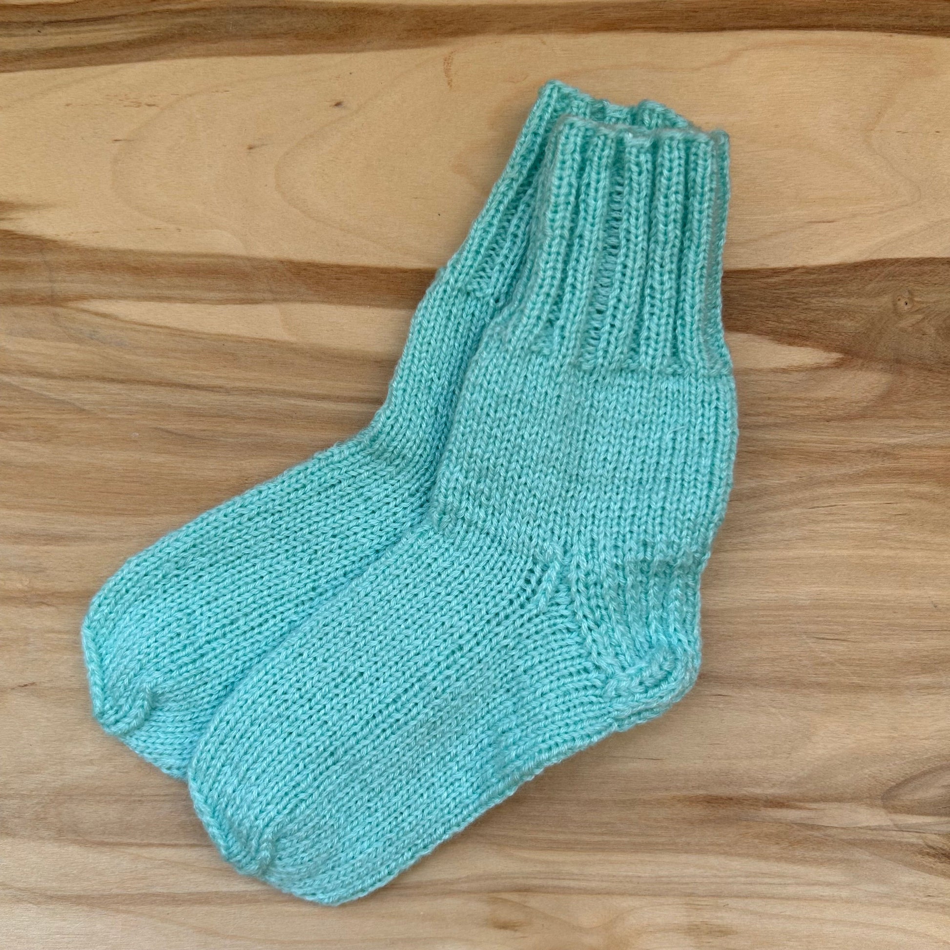 Gaiši zilganzaļas adītas siltās zeķītes 21.-23.izm. (SITĒ 52)