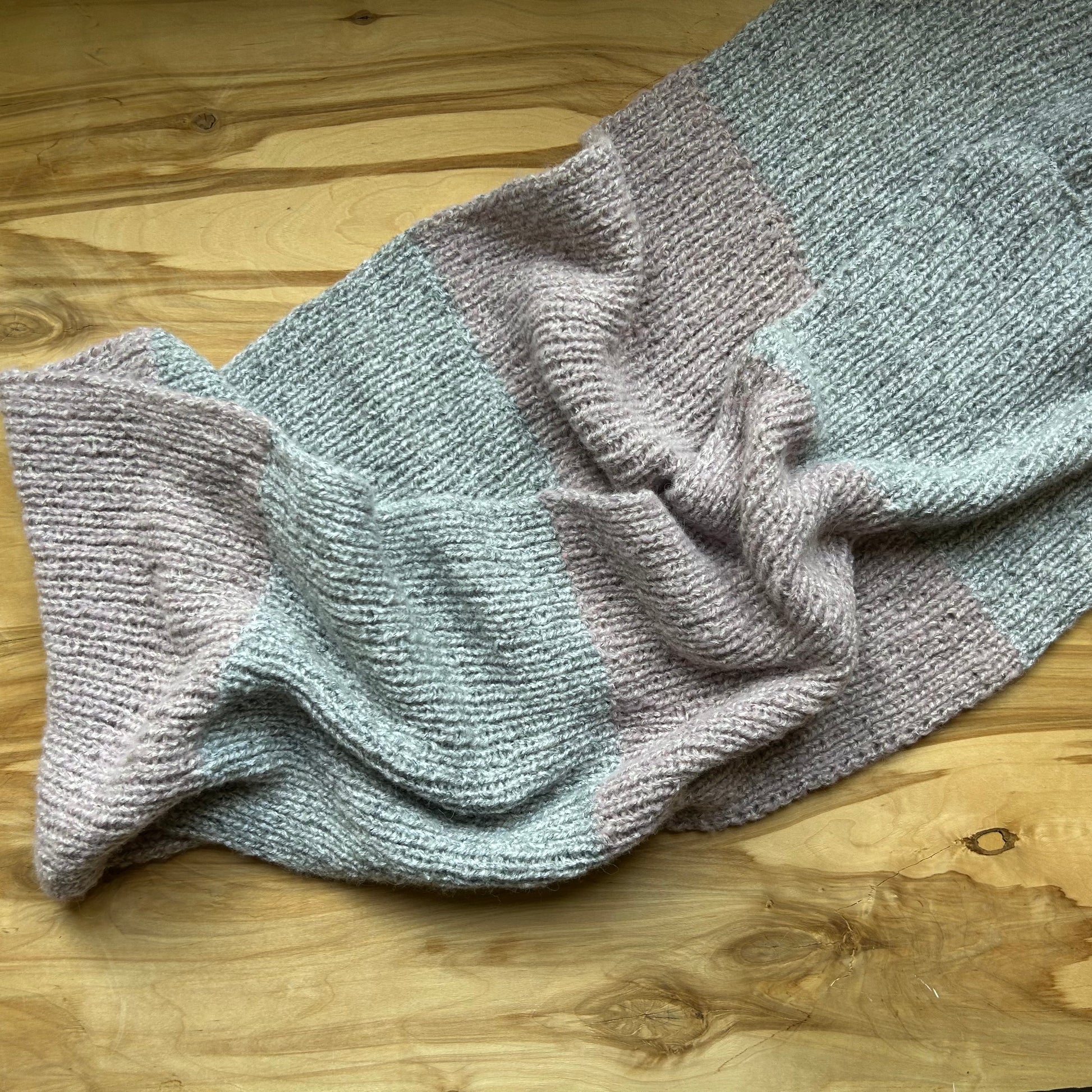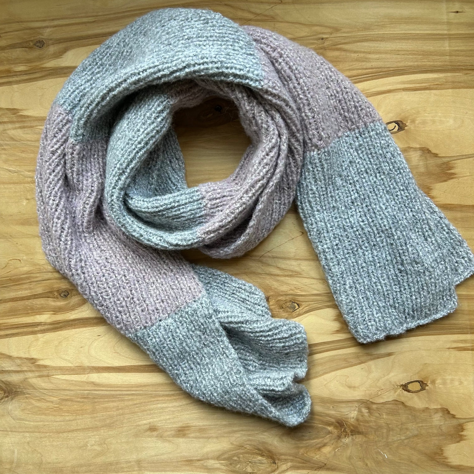 Rokām adīta pelēka / pelēkrozā mohēras šalle (RECE 66)