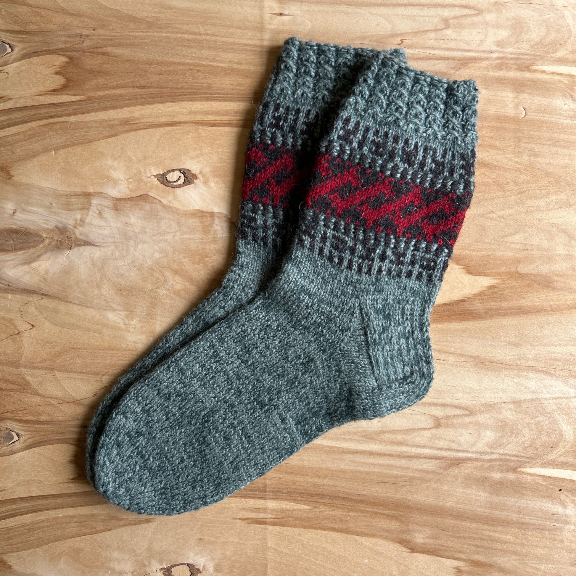 Siltās zeķes 47.-49.izm. raibas zaļa toņa zeķes ar sarkaniem un brūniem ornamentiem (MALI 44)