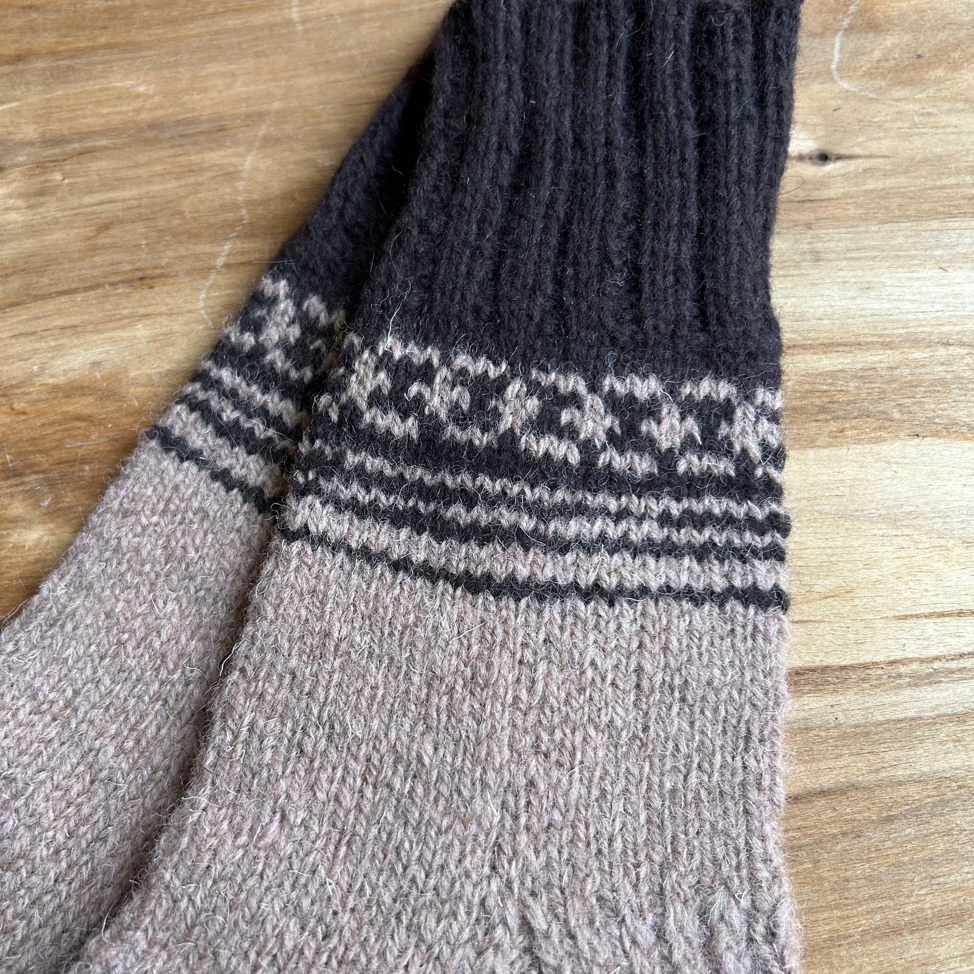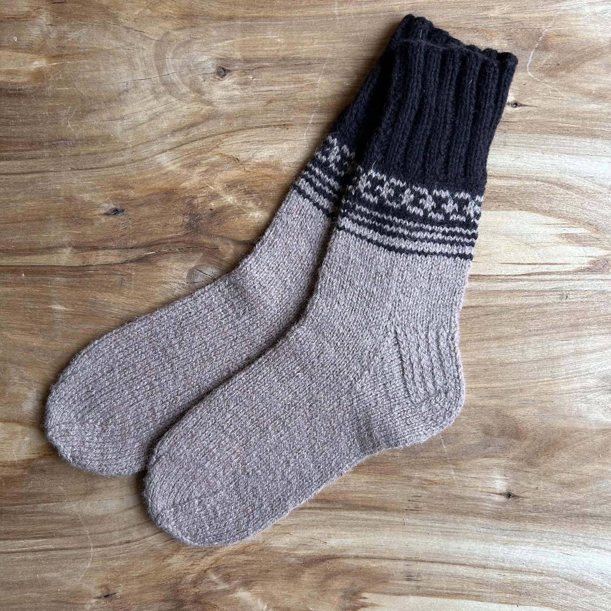 Siltās zeķes 40.-42.izm. gaiši brūnā krāsā ar tumši brūniem ornamentiem stulmu (MAFE 14)