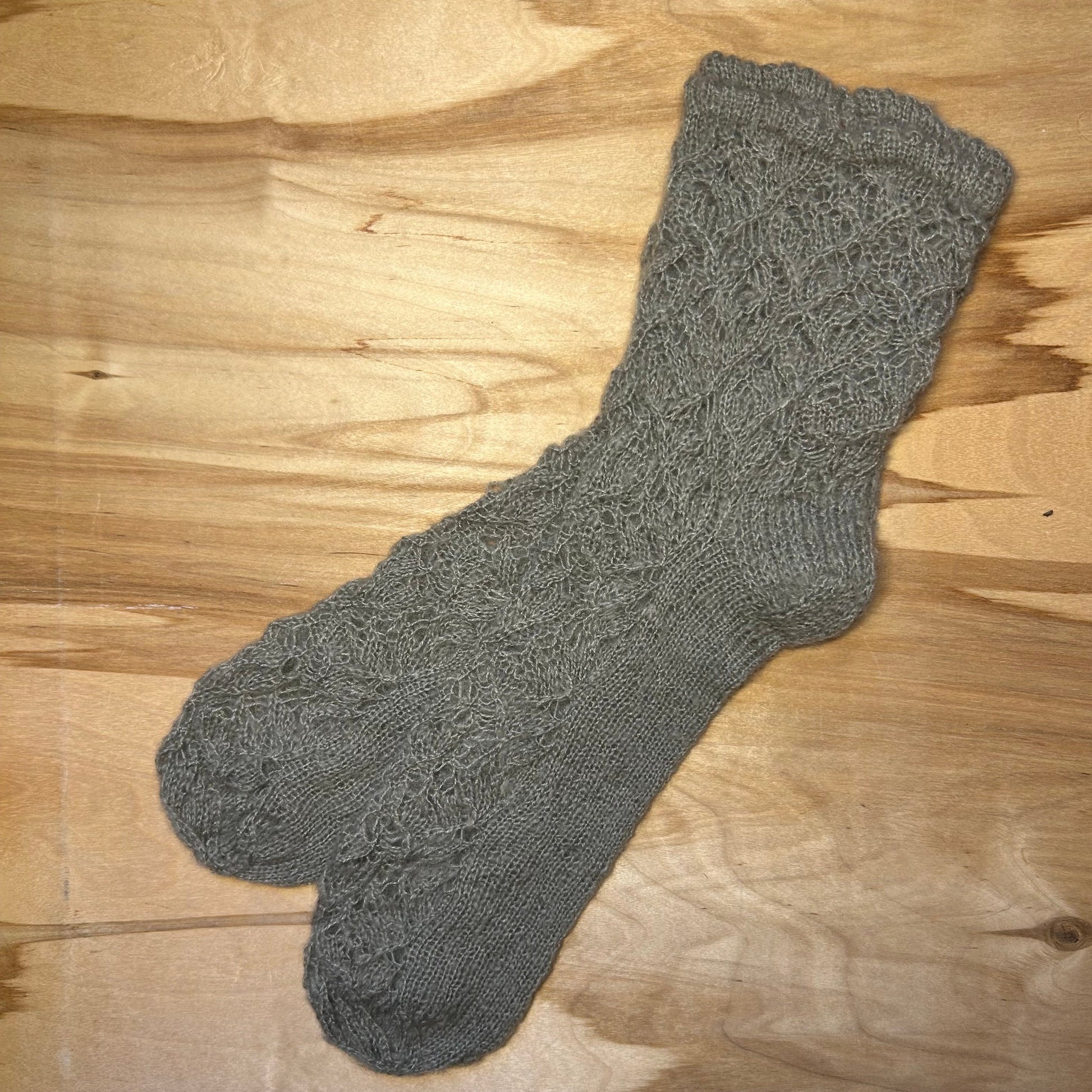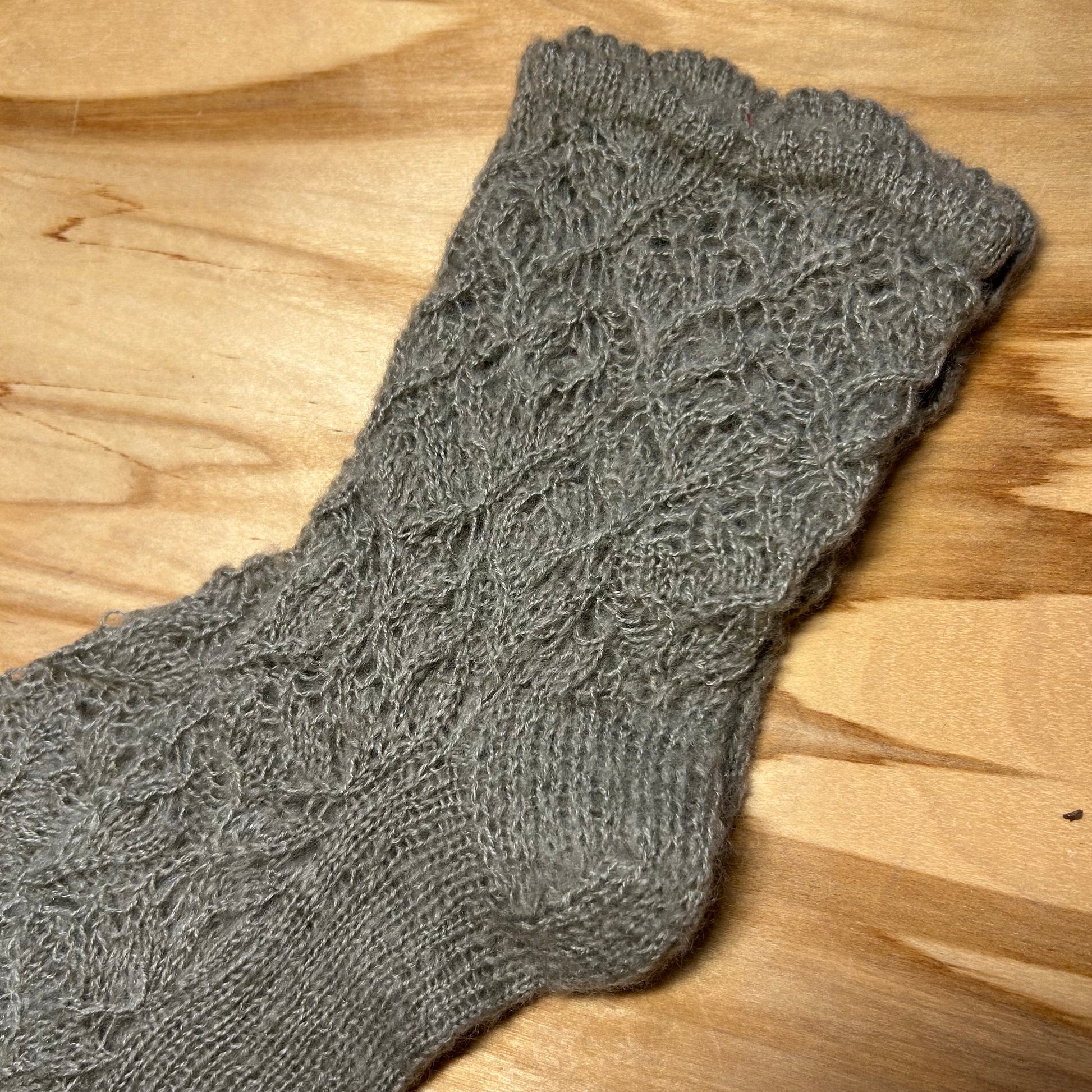 Gaiši pelēkas krāsas mežģīņu adījuma siltās zeķes 40.-42. izm. (SITĒ 37)