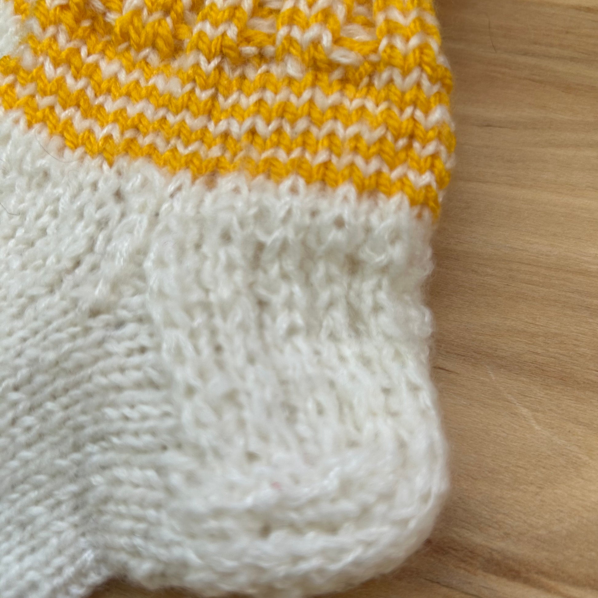 Baltas adītas siltās zeķītes ar dzeltenu stulmu 24.-26.izm. (SITĒ 45)