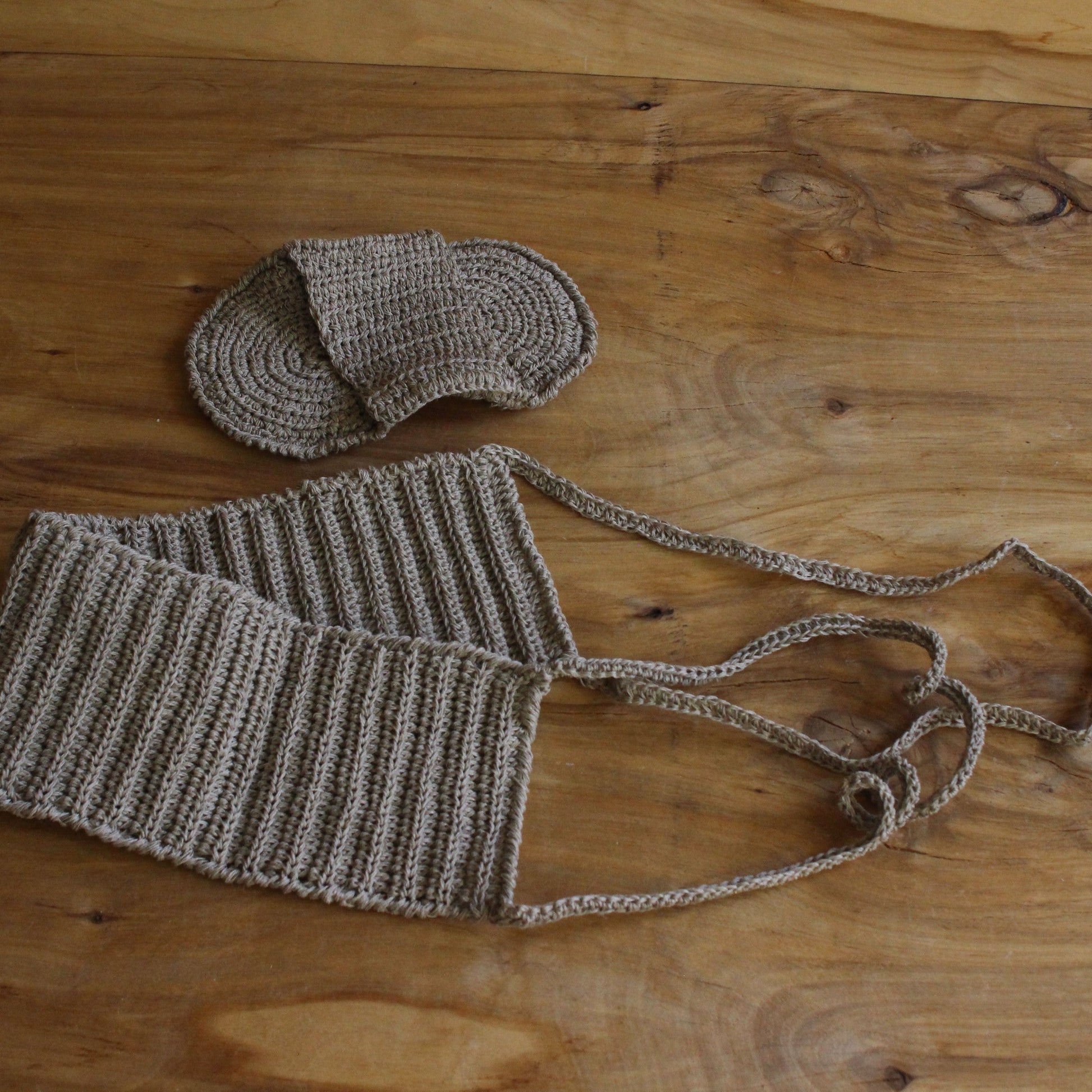 Tamborēts lina pirts lietu komplekts - Tamborrūķa meistardarbs - filigrāns dabīga materiāla roku darbs maigai ādas kopšanai un mierpilniem brīžiem. Izmērs 19x11cm un 44x11cm (ar rokturiem garums 100cm)