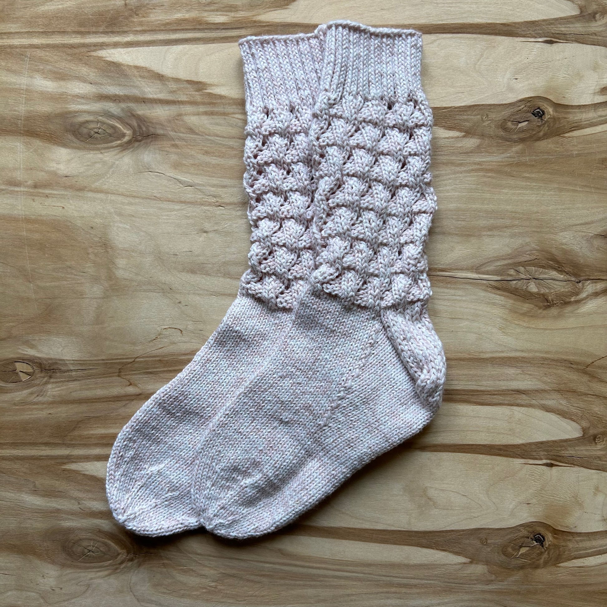 Maigi rozā garas adītas melanža dzijas vilnas zeķes ar rakstainu valnīti 38.-40.izm. (VEPA 134)